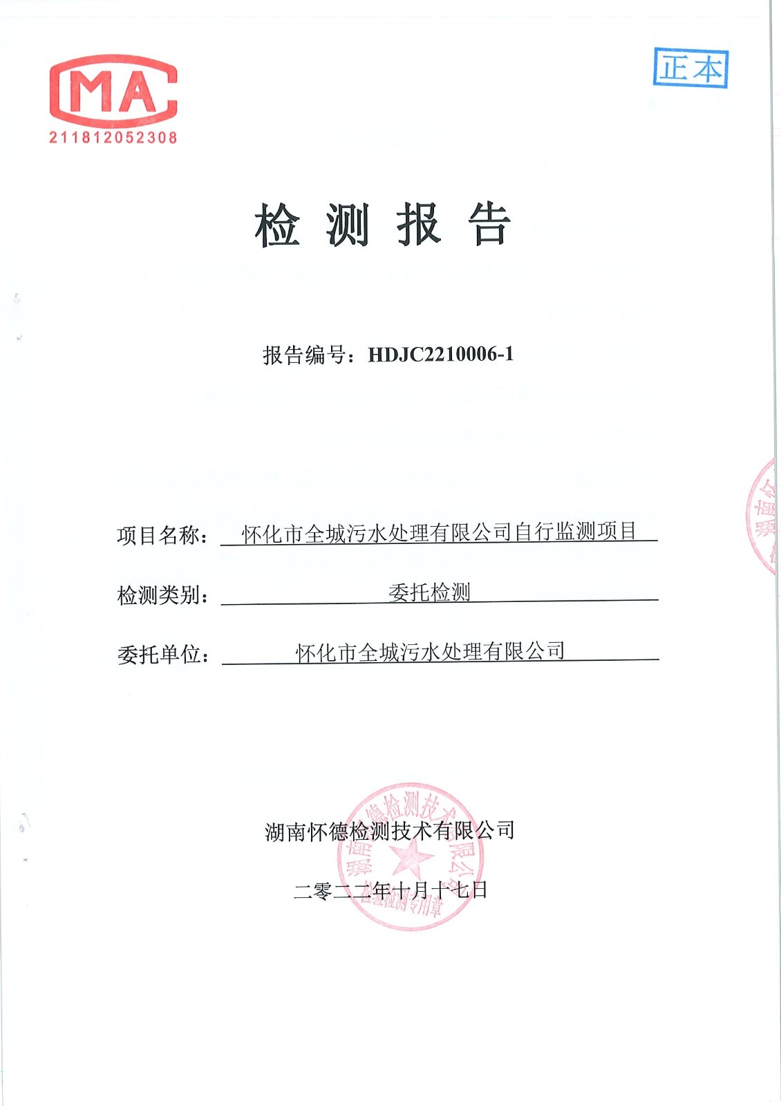 湖南怀德检测技术有限公司 2025年10月 出水水质检测报告